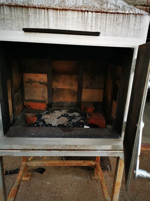 Prosto stoječ žar obložen z šamotom pločevina kotlovne masiva lahko se ga obzida ali vgradi kot kamin peče pice... Cena320eur GSM 070753096