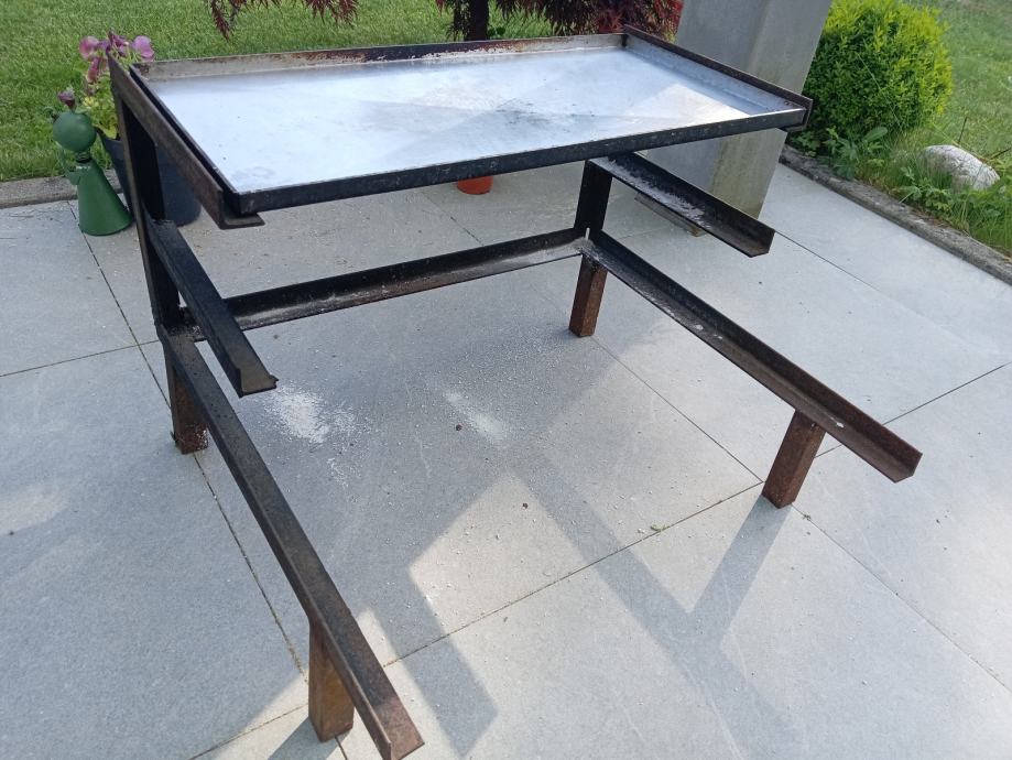 Prodam železo stojalo in rostfrei ploščo za gril dimenzije: dolžina 61 cm, širina 29 cm, višina 44 cm.