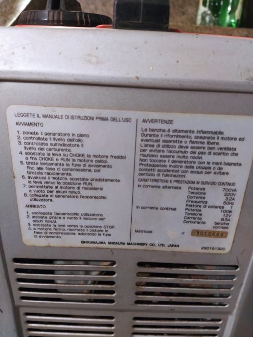 Agregat za elektriko kot dodatek k avtodomu. V primeru kadar imate veliko porabo elektrike je enostavna rešitev s tem agregatom. Je zelo tih in zelo malo rabljen. Vžiga s prve. Motor je štiritakten, znamke Šhibaura 800 SG (made in japan)Ima dva izhoda za 220V in enega 12V.