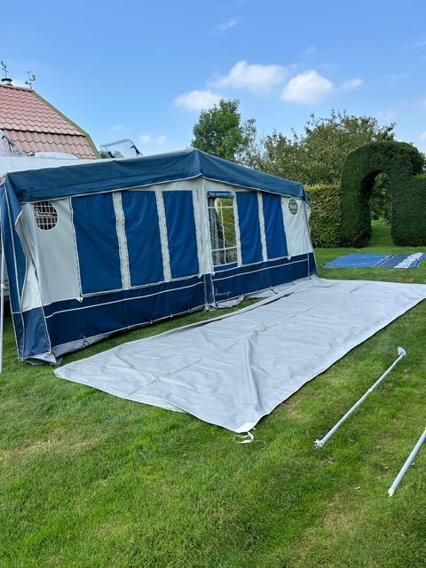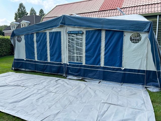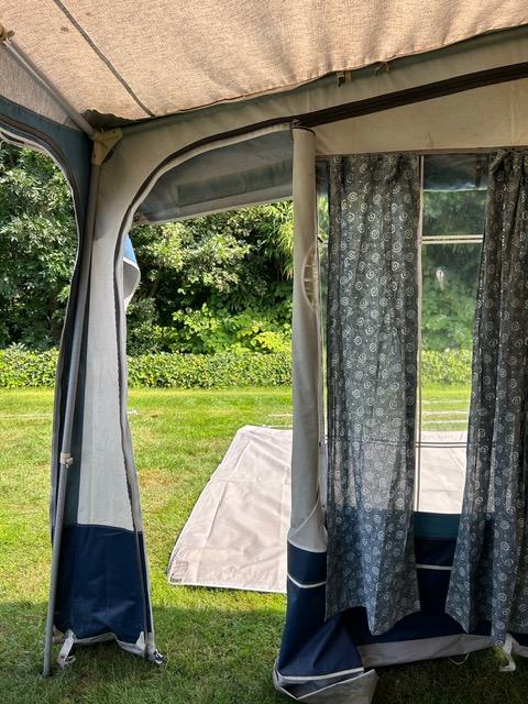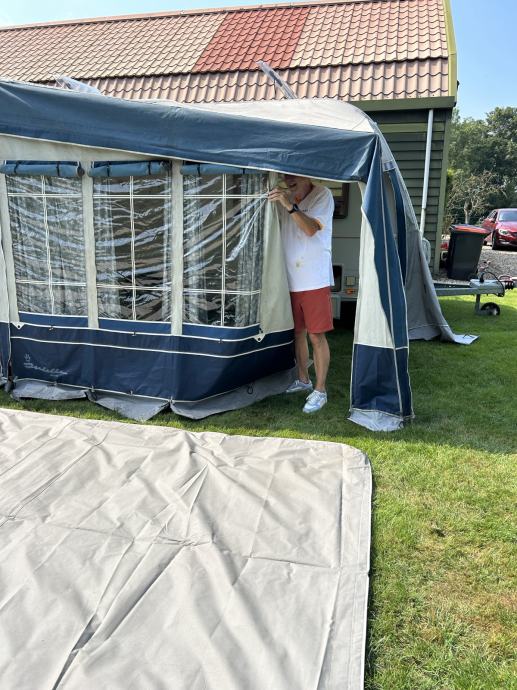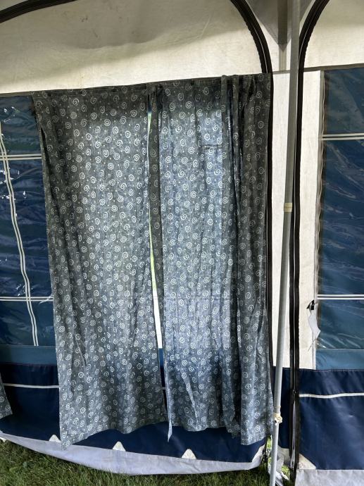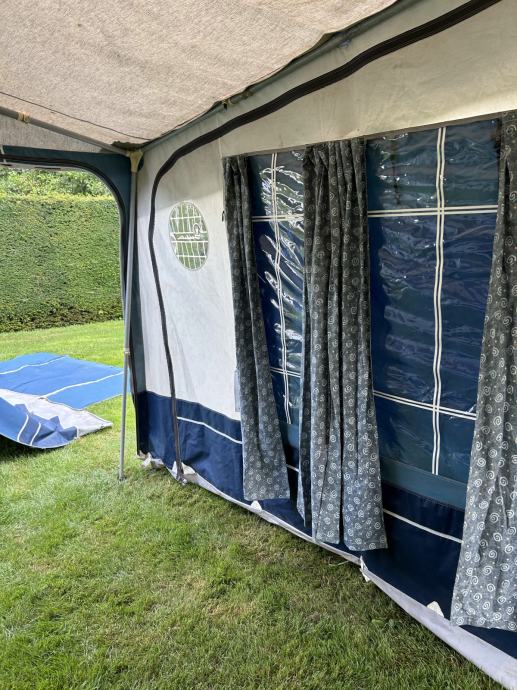 Prodam baldahin Isabella je globine 250 cm v kompletu z jeklenimi palicami in tendo 220 cm s pripadajočimi palicami. Tenda uporabljena le 1 sezono. Primeren je za počitniške prikolice dolžine cca 5,5 m in z obsegom med 975-1000 cm.