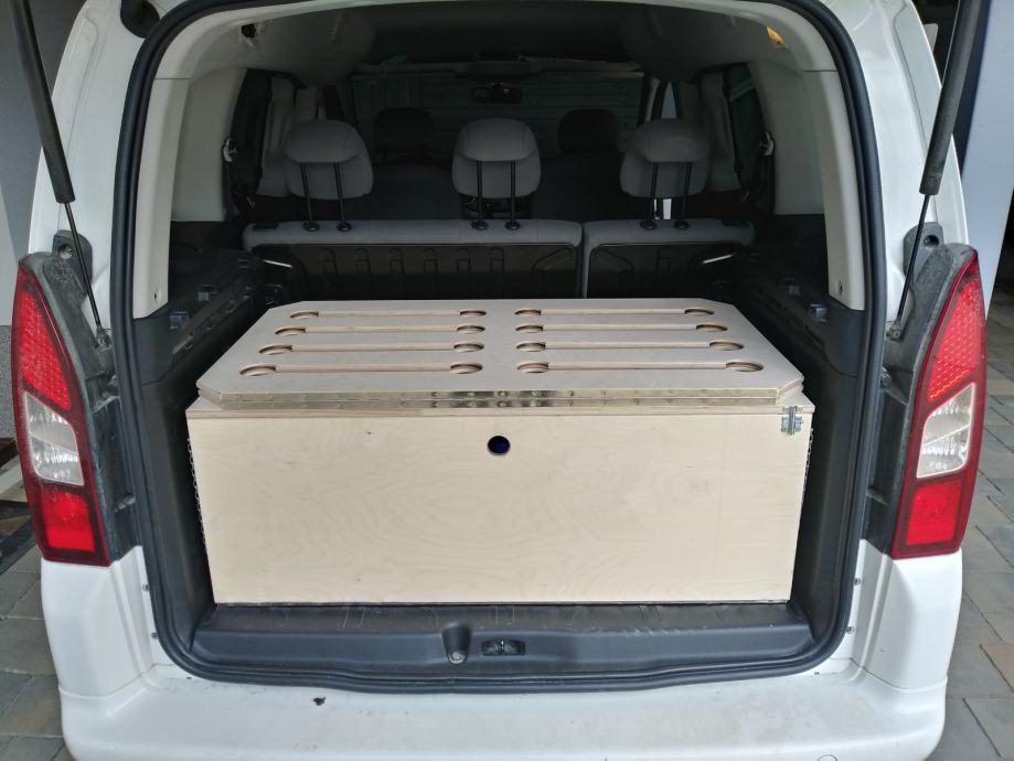 Prodam box velikosti: š x v x g; 114cm x 46cm x 69cm. Izdelan za citroen berlingo, primeren tudi za ostale znamke vozil podobne oblike. Postelja velikosti 195cm x 120cm.