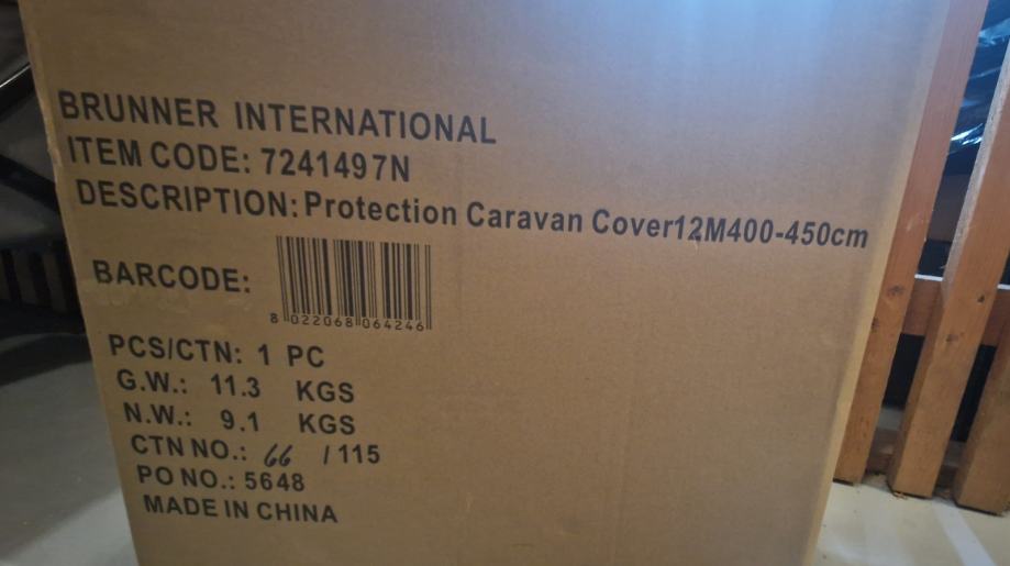 Prodam še nikoli rabljeno 12 mesečno pokrivalo za prikolice znamke Brunner, sive barve, za prikolico dolžine od 400 do 450 cm.