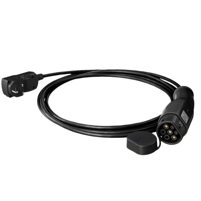 KOMPAKTEN PRENOSNI EV POLNILEC za polnjenje električnih vozil s tip 2 vtičnico iz vsake klasične hišne ali industrijske vtičnice (230V napetost) – podpira polnjenje s tokovi do 13A (do 3.0kW polnilne moči). Vsebuje RCD (30 mA, tip A) vgrajen v stenskem vtikaču.