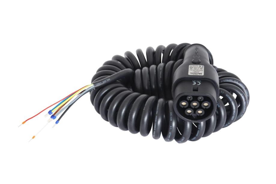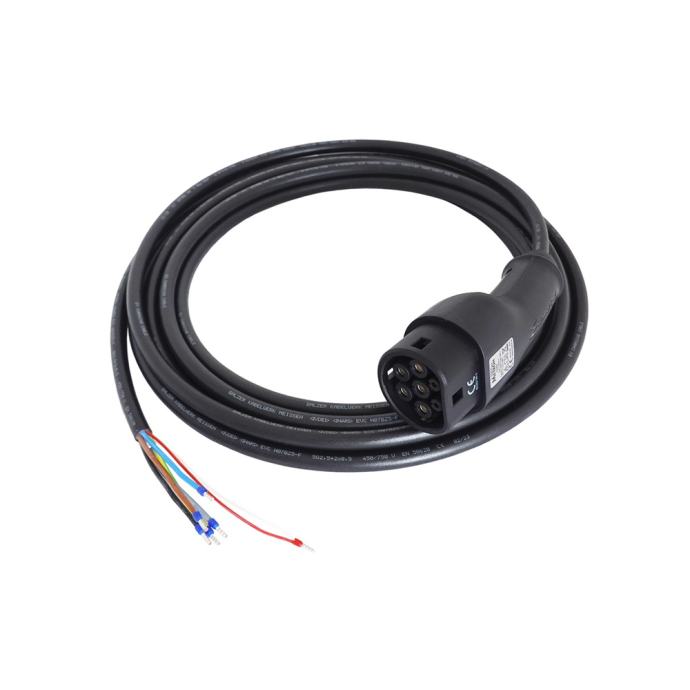 Ta “pigtail” kabel Tip 2 (z vtikačem na enem koncu kabla in odprtim koncem na drugi strani), se uporablja za vgradnjo v zidne ali samostoječe polnilne postaje za polnjenje električnih vozil s polnilnimi vtičnicami Tip 2.