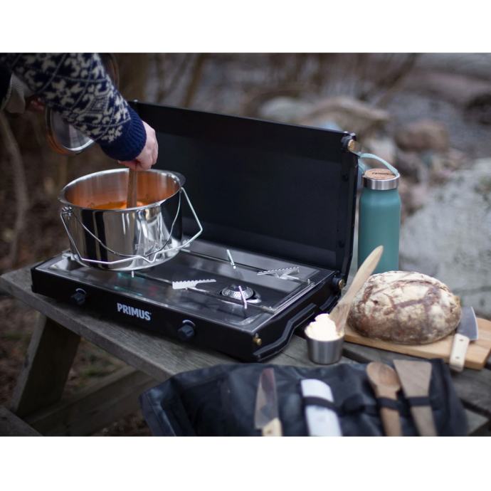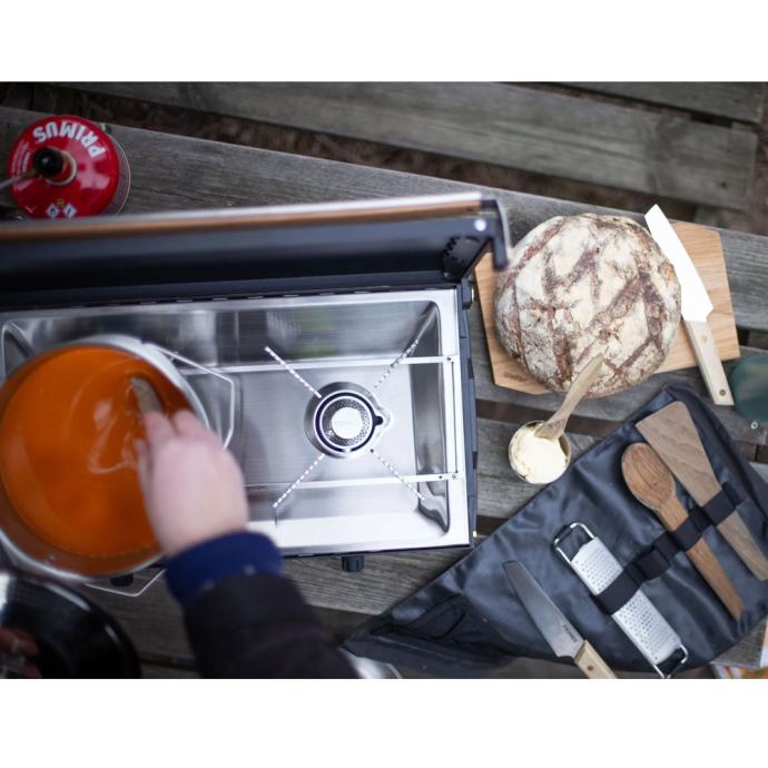 Kompakten in prenosen kuhalnik Kinjia priznane znamke Primus je kot nalašč primeren za piknike, izlete in potovanja z avtom ali avtodomom. Površina kuhalnika omogoča prostor za pripravo hrane v dveh loncih.