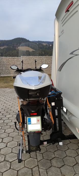 Prodam nosilec za prevoz skuterja. Nosilec se montira na šasijo (fiat podvozje). Nosilnost 150 kg. Homologacija ni potrebna, ker je montažen.