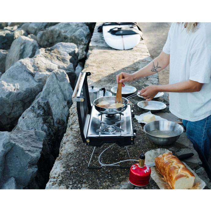 Servirni komplet CampFire iz nerjavečega jekla je odličen za uporabo na potovanju ali kampiranju. Je trpežen in lahek, zato ga lahko uporabite za pripravo ali serviranje hrane na prostem.