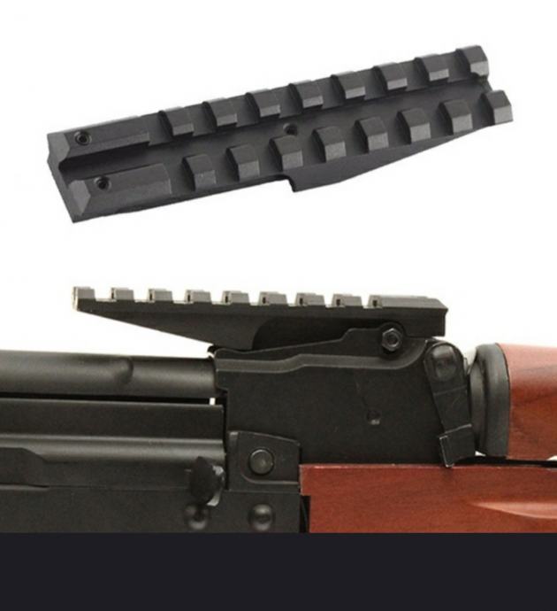Prodam taktičen nastavek - nosilec Picatinny 20mm za AK 47 Kalašnik na katerega lahko priterdite optiko, namerilno napravo, ... Novo!!