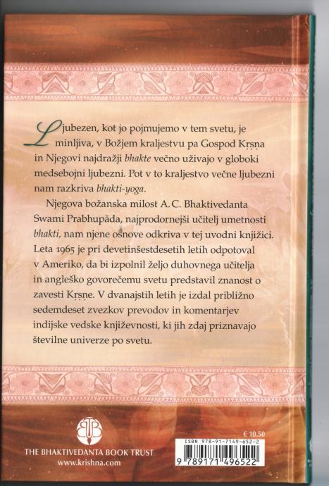 Ljubezen, kot jo poimenujemo v tem svetu, je minljiva, v Božjem kraljestvu pa Gospod Krsna in Njegovi najdražji bhakte večno uživajo v globoki medsebojni ljubezni nam razkriva bhakti-yoga.