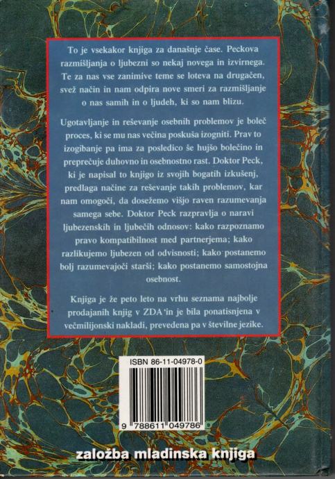 Prodam nežno rabljeno knjigo LJUBEZEN IN DUHOVNA RAST, dr. M. Scott Peck, založba Mladinska knjiga, Ljubljana 1991, trde platnice, 233 strani, zbirka Za zdravo življenje.