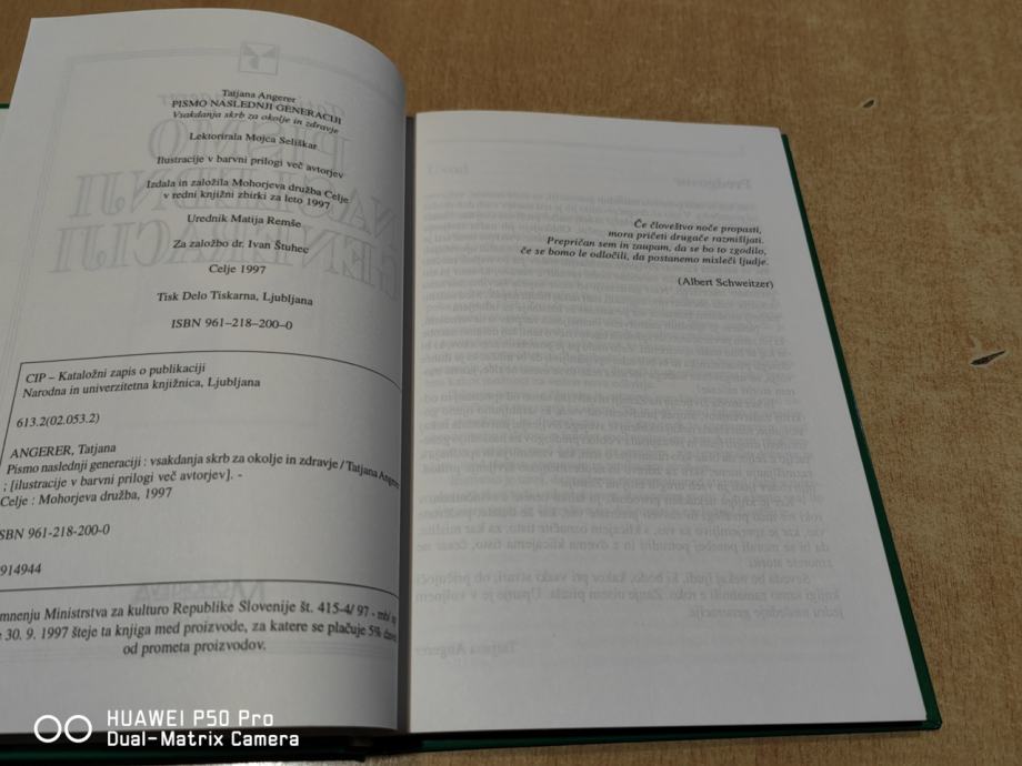 # Pismo naslednji generaciji : vsakdanja skrb za okolje in zdravje