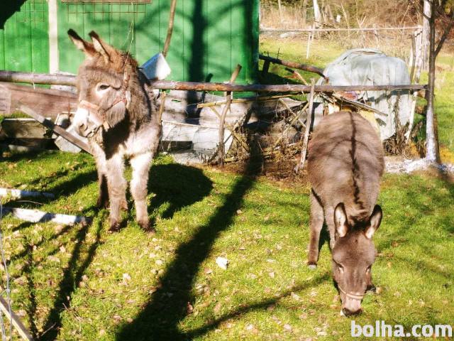 Prodam par oslov. Oslica je verjetno breja. Osla sta stara 3 leta. Prodam samo v paru. Cena za par. Vec informacij na 031 756 285