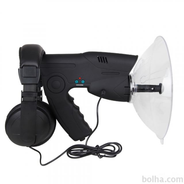 Parabolni mikrofon profi je naprava za poslušanje človeških pogovorov, živalskih glasov in ostalih zvokov z velike oddaljenosti, močnejše zvoke slišite tudi do 300 m. Normalno glasen človeški pogovor slišite iz oddaljenosti od 100-150 m, odvisno od hrupa v okolici. Naprava ima vgrajeno optiko s katero si lahko živali, ljudi približate do 10 krat, ter digitalni diktafon, ki vam omogoča , da kakšno informacijo tudi posnamete. Priložena podrobna slovenska navodila, garancija 1 leto.
