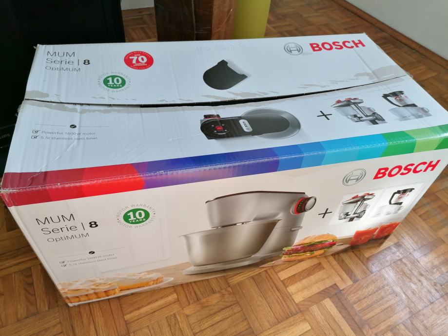 Prodam zelo lepo ohranjen kuhinjski robot Bosch MUM5 z vgrajeno tehtnico. Star je približno 4 leta, bil pa je zelo malo uporabljen – deluje brezhibno in je lepo ohranjen. Zraven je tudi originalna embalaža.