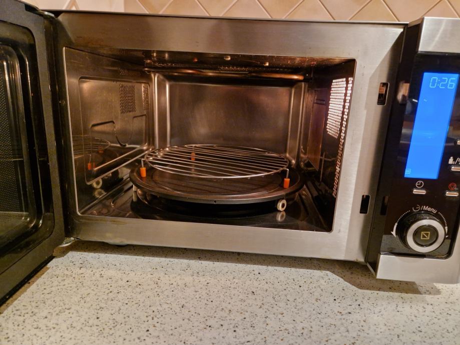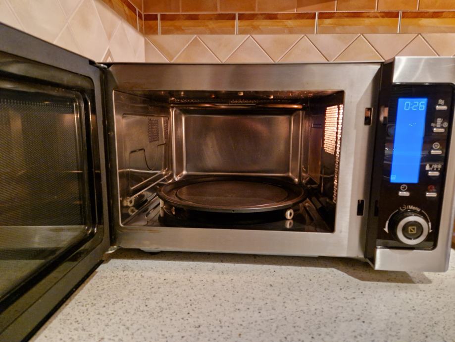 Lepo ohranjena, brezhibno delujoča, čista mikrovalovna pečica Studio. Ima konvekcijo in dvojni žar. Moč mikrovalov 900W.