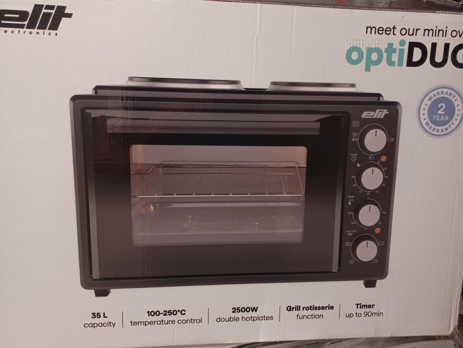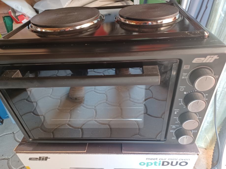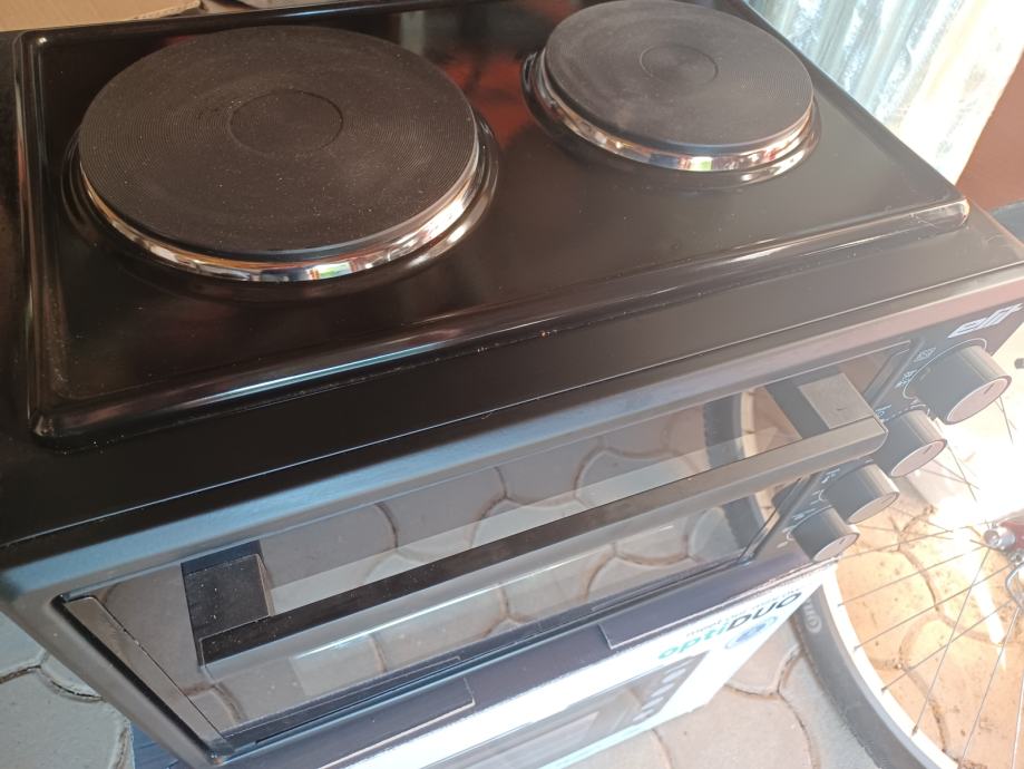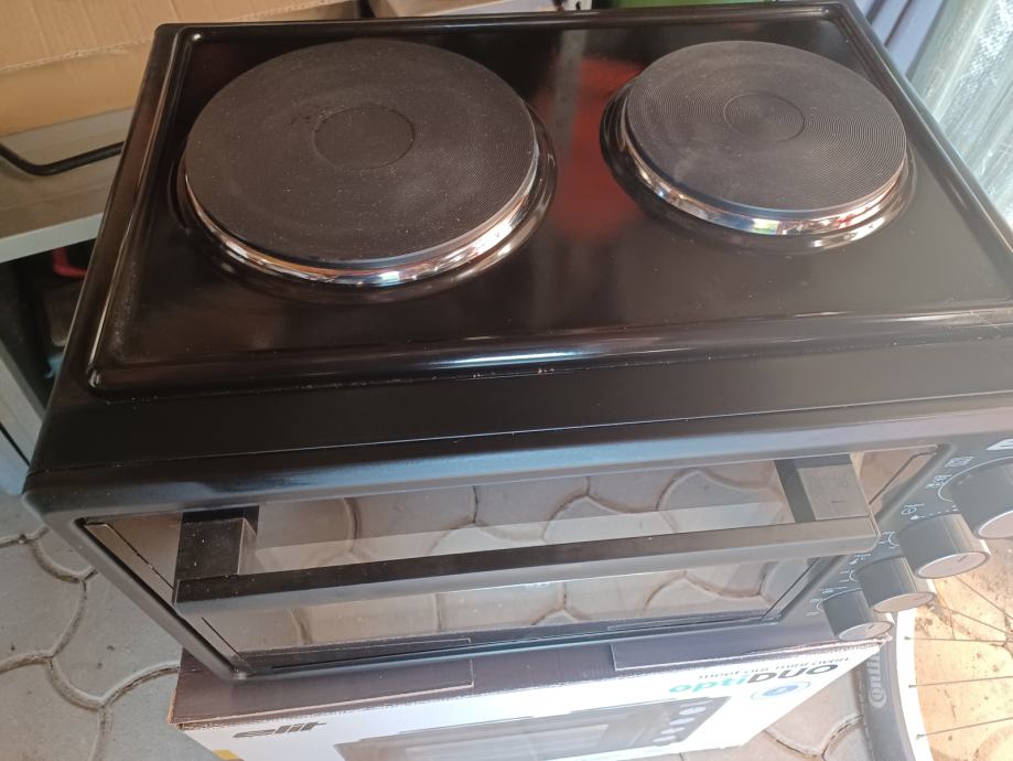 Na prodaj praktično nov mini štedilnik, 2x plošče + pečica z žarom + žar za piščanca.
