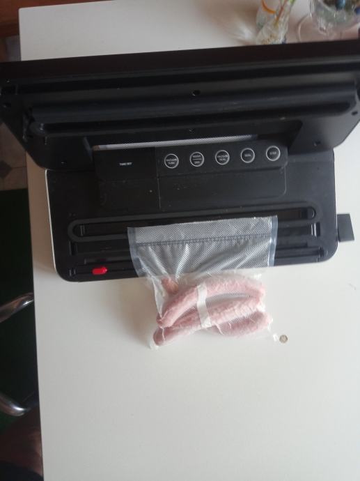 Naprava izsesa zrak iz vrečke,zavari in s tem podaljša živilo brez vsakega slabega vonja. Vakumsko napravo WMF LONO ,sem prejel za darilo in ni rabljena !