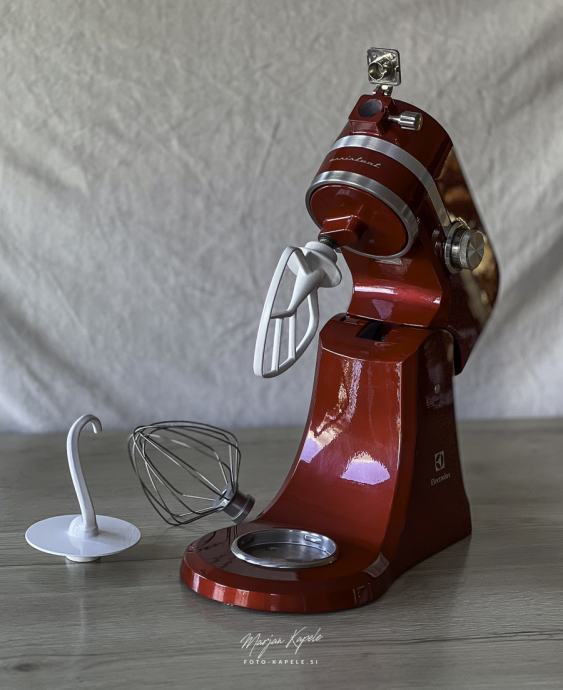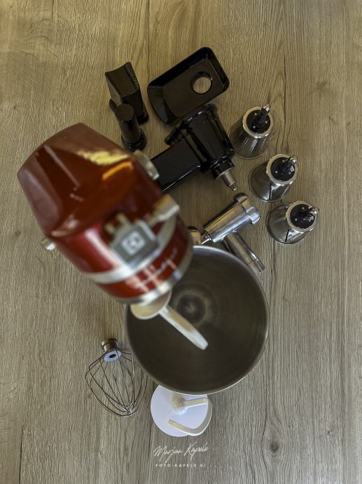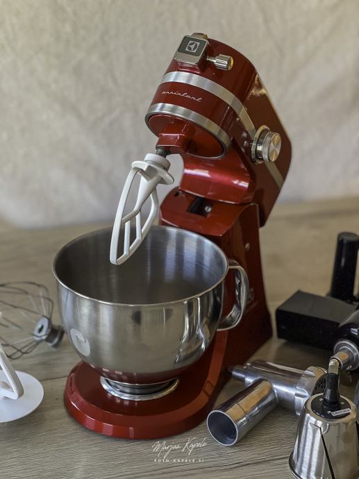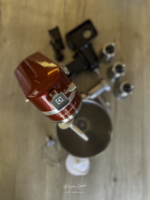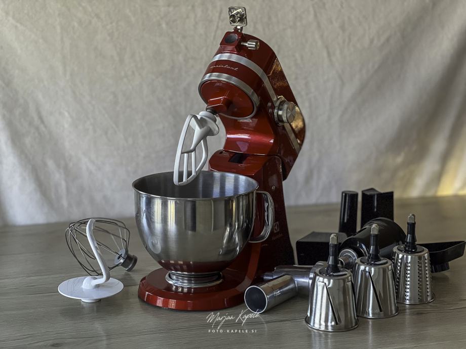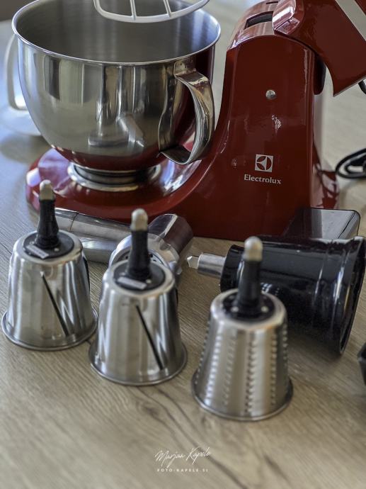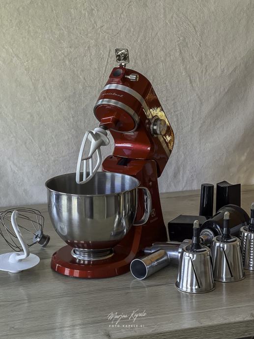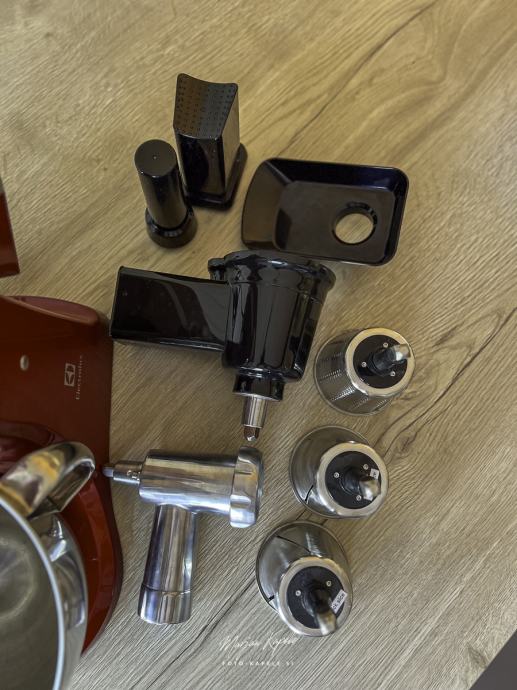 Malo rabljen in lepo ohranjen kuhinski pripomoček pri pripravi hrane. Popolnoma delujoč aparat z priloženimi različni pripomočki. Aparat je bil samo nekajkrat uporabljen, Po fotografija lahko vidite da je bil malo v uporabi,