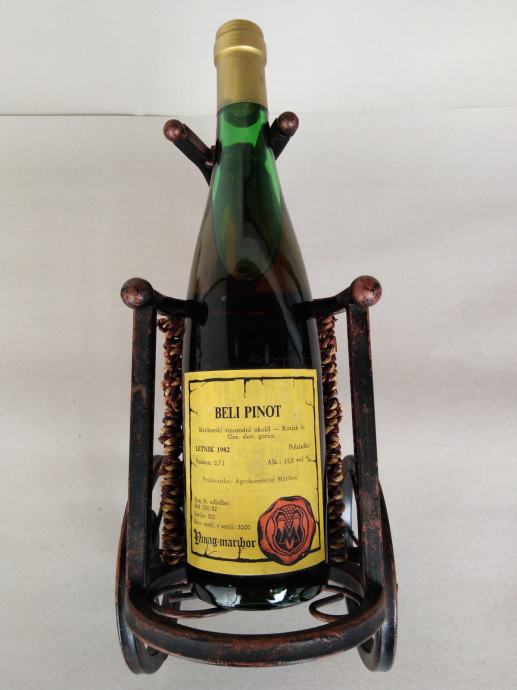 Prodam arhivsko buteljko z rustikalnem nosilcem - primerno za obletnice.Buteljka je letnik 1982- kmalu stara 40 let. Glej slike. 041 582 613 Jože.