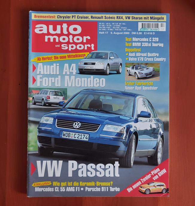 Prodam odlično ohranjeno revijo Auto Motor und Sport 9.8.2000.
