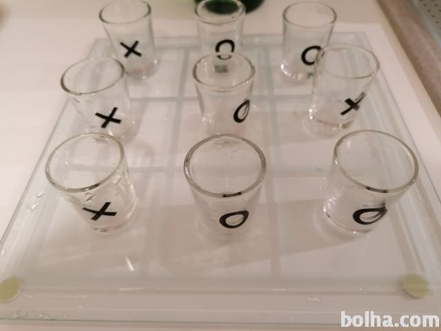 slavna igra križci in krožci oz. tri v vrsto, s steklenimi kozarčki (štamprli).