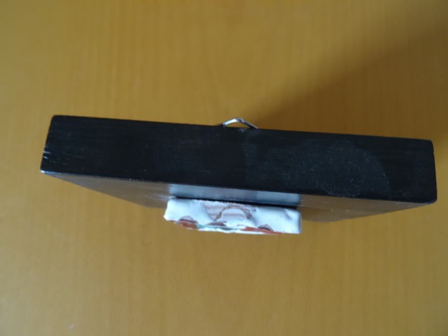 keramična slika na lesu, velikost lesene plošče 13 x 12,5 cm, velikost keramičnega dela 6x 6,5 cm, neuporabljeno, cena 2€+ptt