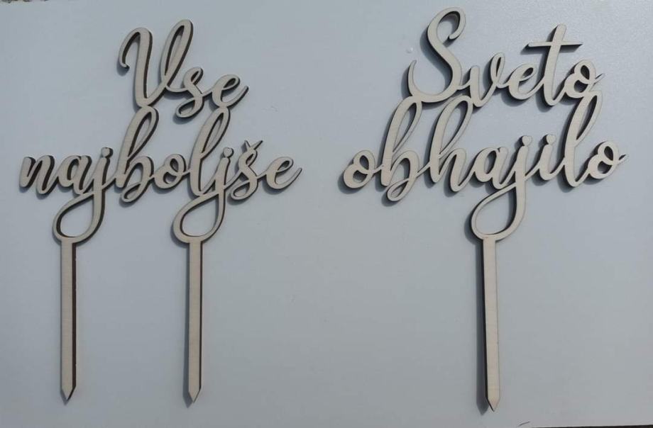 poljubni leseni topperji in drugi napisi za torte in ostala dekoracija.