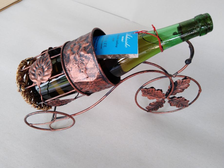 Ročno izdelani nosilci za steklenice vrhunskih vin. Namenjeni so za darila ali reklamno namestitev steklenic. So kovinski - imitacija bakra. Vse štiri prodam za 30 eur.. Inf. na 041 582 613.