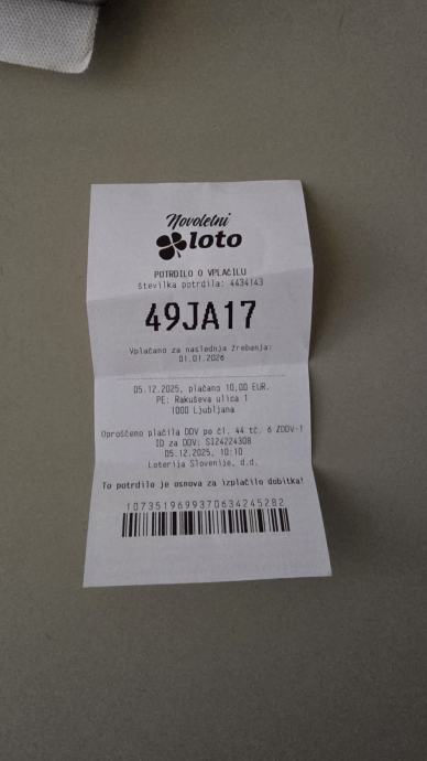 Prodam srečko novoletni loto najboljšemu ponudniku na mail sms ne odgovarjam