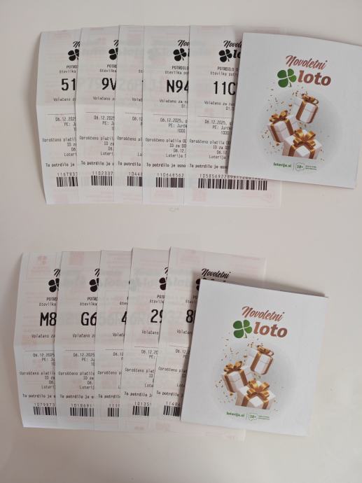Prodam 10 srečk za Novoletni loto. Cena za 10kom. skupaj 2000eur. Cena za kos 250eur.