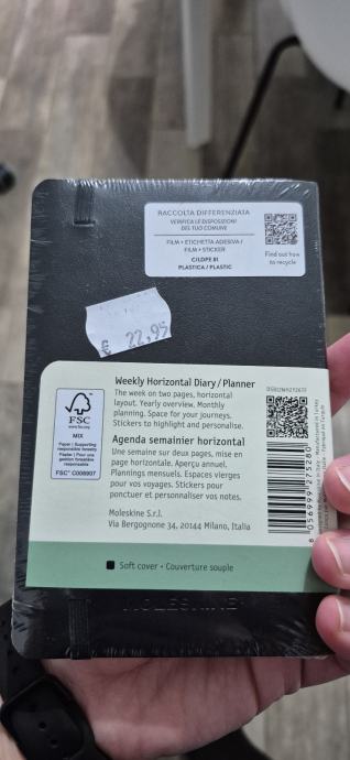 Prodam nov, še zapakiran planer Moleskine za leto 2026. Tedenski, horizontalni. Pocket size. Mehke platnice. V črni barvi.