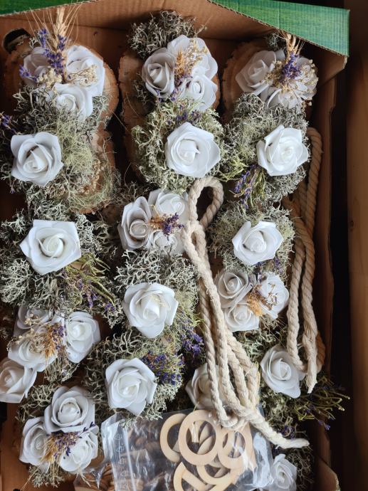 Prodam različne dekorativne okraske za mizo na lesenih podstavkih in v celoti izdelani ročno iz naravnih materialov (cca 20 kom)