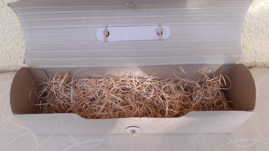Prodam lepo ohranjeno kartonasto darilno škatlo primerno za steklenice.