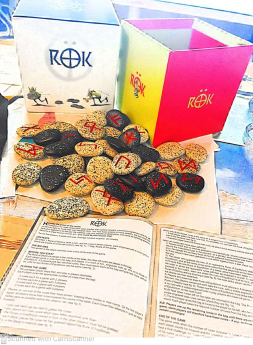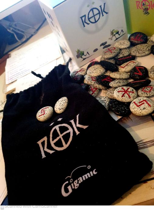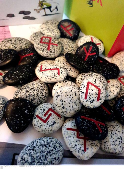 - 49 run: 1 runa usode (s piko) in 48 run v treh barvah, na vsaki je vgraviran runski simbol (v vsaki barvi je 8 parov run) ;