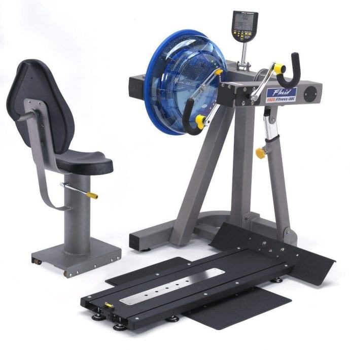 E820 Fitness UBE ima fiksno dolžino roke in samorazlivne ergo ročaje, ki zagotavljajo takojšnjo prilagodljivost za veliko uporabo in skupinsko telesno pripravljenost. Sedež lahko nastavite na zavoju nivoja in ga premaknete na zadnji del ploščadi za stoječo uporabo. E820 Fitness UBE ponuja 20 stopenj odpornosti proti tekočinam in se ponaša s patentirano FDF-jevo spremenljivo odpornost na tekočino, ki omogoča kolesarjenje naprej in nazaj za popolno vključenost mišic. Zasnovan za sestavljeno vadbo zgornjega dela telesa in stabilnosti jedra v stoječem položaju, je ergo E820 Fitness za zgornji del telesa zelo motivirajoč kardio pripomoček v telovadnici.
