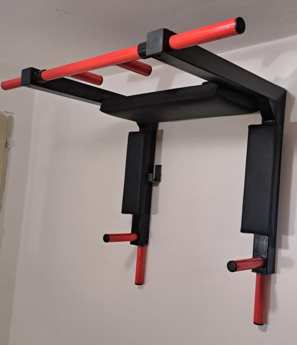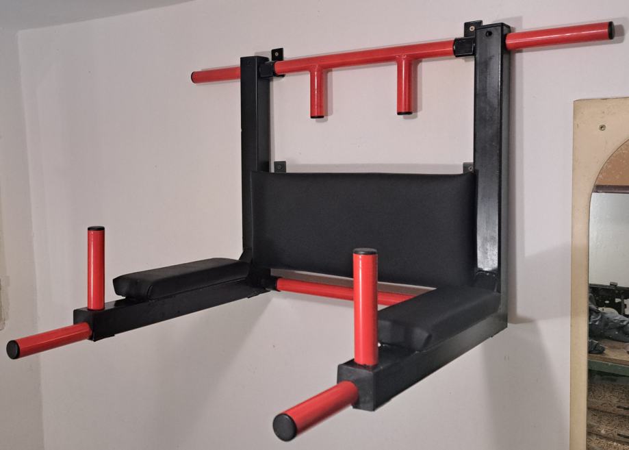 Večnamenska vadbena naprava, ki mogoča pull up vadbo telesa ter dip vadbo.