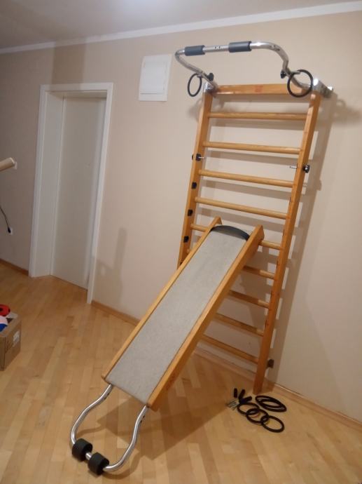 Prodam letvenik (višine 2m) oz. ripstol Elan z dodatkom za dvigovanje in mizo oz klopjo. Cena kompleta na sliki 175€.