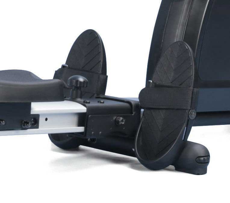 Napredna veslaška naprava za zahtevnejše uporabnike z elektronsko nastavitvijo upora na 12 nivojih + 4 po želji. Narejen je iz močnega aluminija z elegantno obliko. Udobni sedež drsi po krogličnih ležajih.Magnetni upor na 12 nivojih, natančna elektronska nastavitev.LCD digitalni zaslon z osvetlitvijo, prostor za tablico ali telefonZaslon prikazuje: število ponovitev/minuto, vse ponovitve, kalorije, čas, razdalja, 500/TM, Watt, 4 HRC, Recovery, 4 programi po želji, srčni utrip (pas ni vključen).Dovoljena teža: 130 kgNaslon za noge s paskom