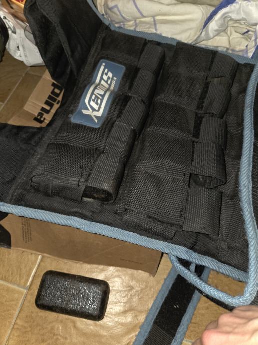 Prodam utežni jopič 30kg iz trpežnega najlona v brezhibnem stanju, vsaka utež ima 1kg sepravi na vsaki strani po 15x, tako da se lahko po želji menja kg.