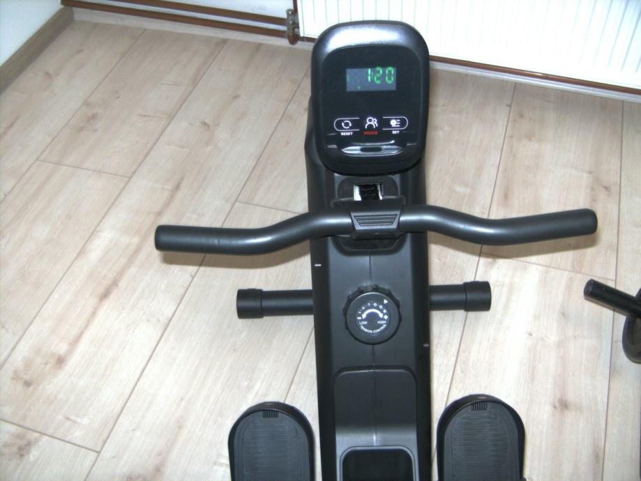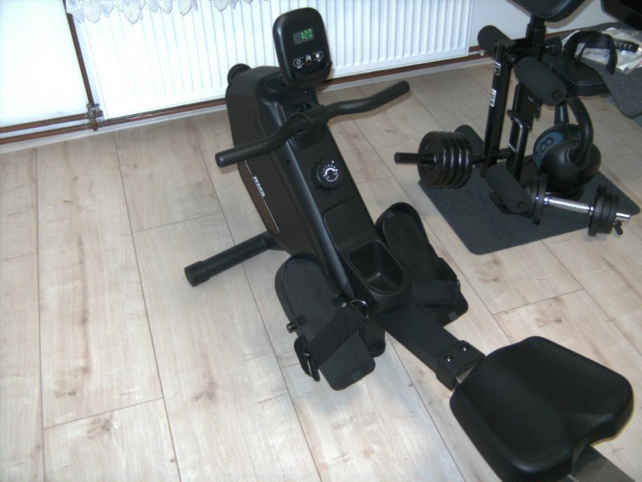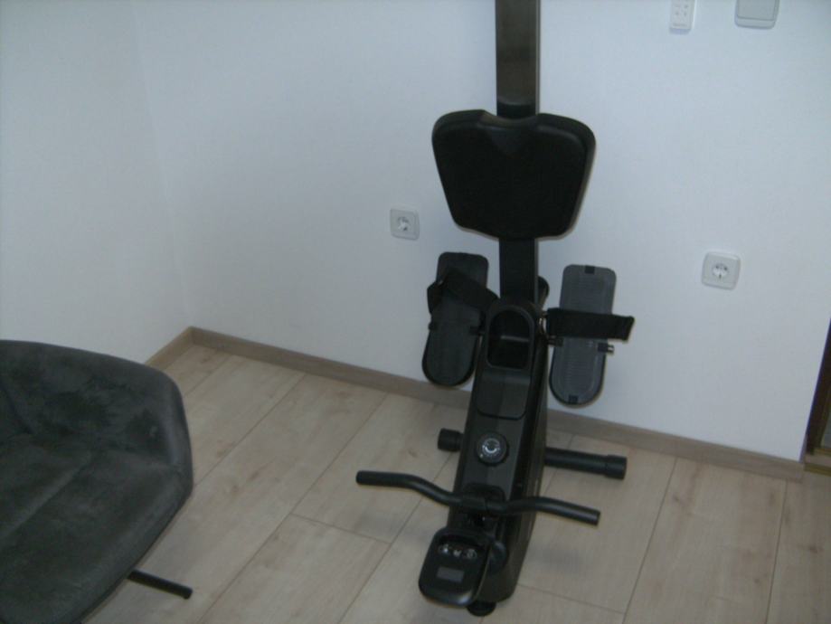 Veslaška naprava, 16 stopenj odpora, 300 N, za osebe od 120 do 200 cm višine in teže do 150 kg, pomik sedeža 100 cm, zložljiv.