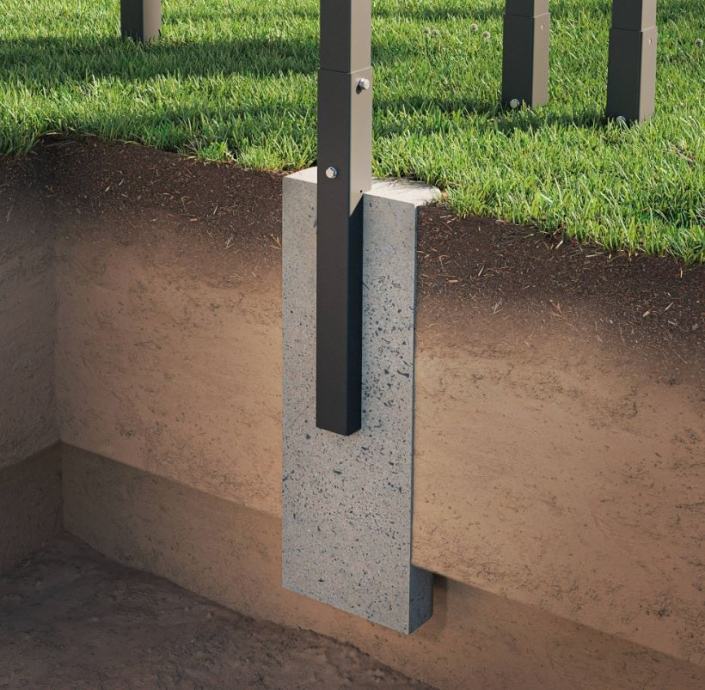 Za najboljši rezultat priporočamo, da stebre konstrukcije vgradite v zemljo na globini najmanj 37 cm in nato betonirate. nbsp;Minimalne dimenzije temelja so 25 x 25 x 60 cm. nbsp;Ta rešitev vam bo zagotovila maksimalno stabilnost, tudi med zelo intenzivno vadbo - ne glede na naravo podlage.