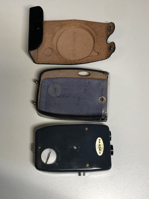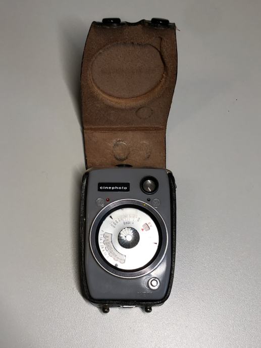 Ročni svetlomer Cinephoto narejen na Japonski s črnim usnjenim ovitkom.