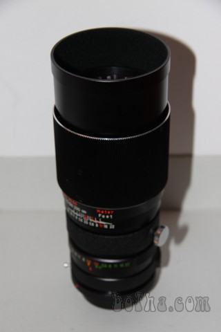 Objektiv ima bajonet za Canon analogne fotoaparate (FD). Vgrajen je obroč za pritrditev na stativ. Je v izvrstnem stanju, praktično nerabljen.