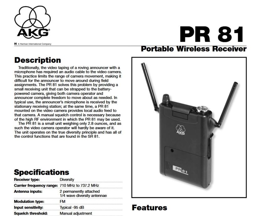 Standard Accessories: PR 81/880/*: Portable receiver with