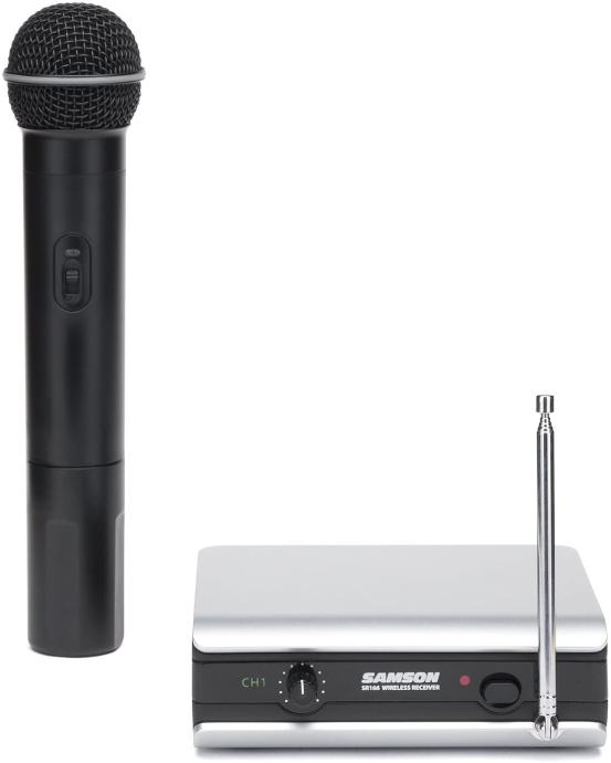 The Samson Stage v166 Vocal Wireless System (Channel 20) is designed to offer exceptional wireless performance in a variety of applications. It's the ideal wireless solution for vocalists, karaoke performers, DJs or any application where reliable handheld wireless capability is needed. At the core of the Stage v166 system is the SR166 VHF wireless receiver. The receiver's front panel features an RF channel indicator and a large rotary volume knob. The receiver also offers a tuned antenna and a 1/4" channel output. The Stage v166 system comes with a 1/4" to 1/4" cable.