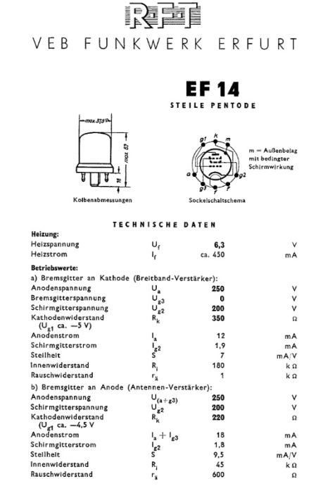 NOS Radijska cev, elektronska cev EF14 Funkwerk Erfurt