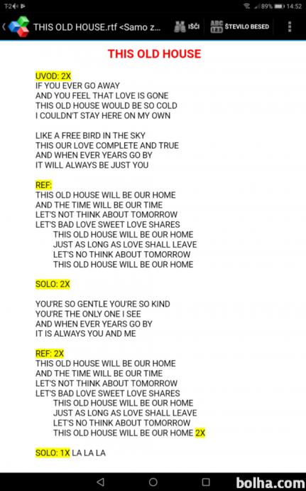 Odličen program za besedila za vse (tablice) tablične računalnike z OS android. Možna povezava med tablicami za ansambel itd. info na 040663669. Predvaja pdf in mp3