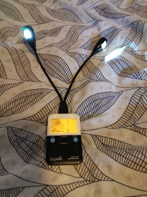 Prodam skoraj nov metronom, ki ima tudi 2 svetilki. Zelo priročno za pritrditev na notno stojalo in osvetlitev notnega zvezka...
