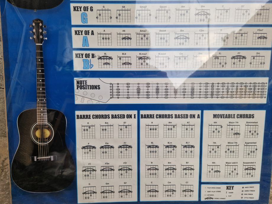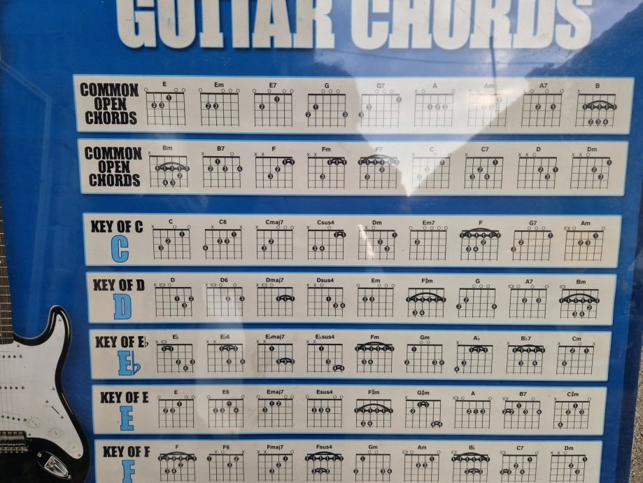 Prodam lepo ohranjen plakat kitarskih akordov. Potrebna menjava pleksija, kot vidno na sliki.