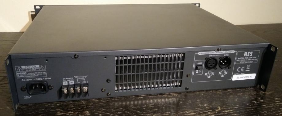 Prodam 480W enokanalni (mono) ojačevalnik RCS BA-480C, namenjen profesionalnemu ozvočenju na 100V napeljavi.